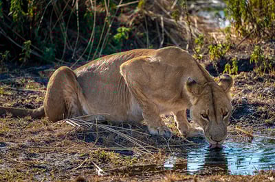 There are two platform hides in the concession. During an unusually high flood season, game drives begin by boating out to a nearby Hunda Island where the vehicles are waiting, and the drive begins from there. Huge herds of red lechwe can be seen, followed by their primary predator – prides of lion. Mokoro, boat trips, fishing, day and night game drives and birding are usually on offer all year round due to the abundance of wildlife in Botswana.