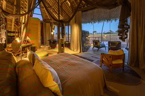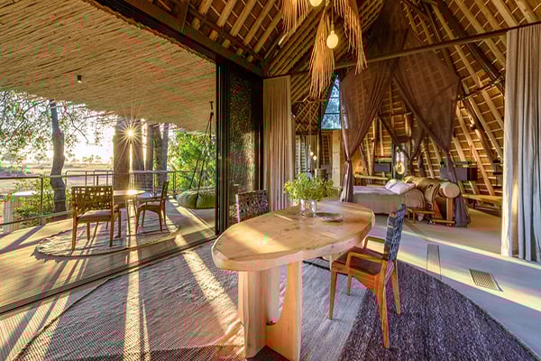 One of the most luxurious properties in all of Botswana, Jao Camp boasts a spectacular setting overlooking a channel and floodplain in the Okavango Delta’s exclusive Jao Concession. Two words that best describe this stunning property and area: luxury and tranquility. Here, your villa is nestled amongst huge trees overlooking a lagoon lending a feeling of being in a luxury tree house. Water and land-based activities add the perfect Delta experience to any Botswana Itinerary.