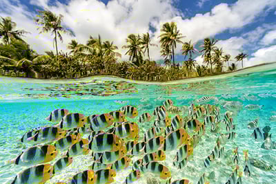 Le Taha’a Island Resort & Spa is located just off of Taha’a, which is a 40-minute boat transfer from Raiatea airport. We love its barefoot, traditional style, and the use of wood and plant materials gives it a natural and rustic feel. The hotel’s coral reef is a definite highlight, as is their ‘catch of the day’ concept on Fridays when the local fisherman display their catches from that morning, and guests can purchase them at market price for the hotel chef to prepare accordingly.
