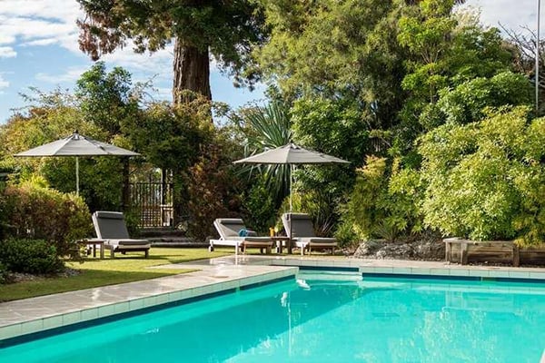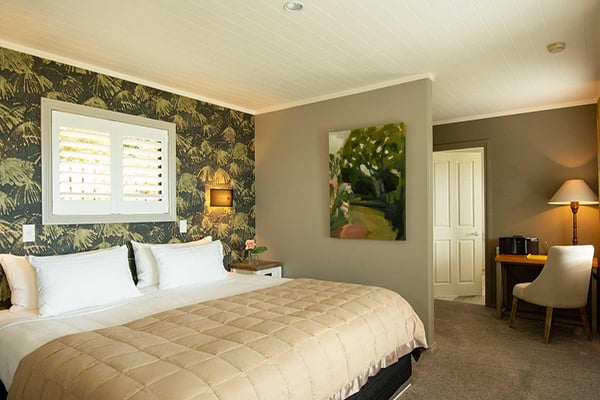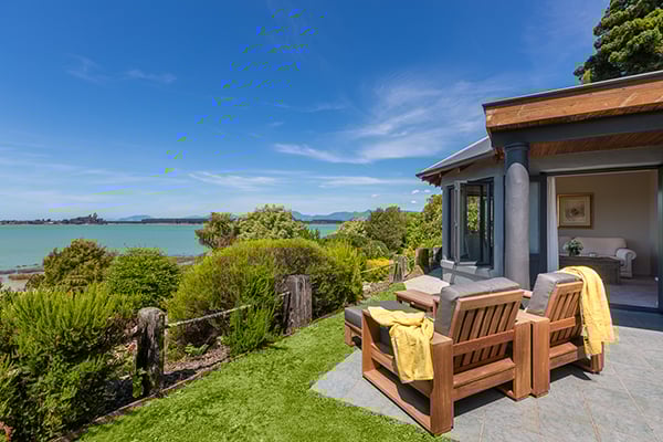 Te Koi The Lodge at Bronte is a luxury boutique hotel set in a delightful English-style garden on the shores of the Waimea Estuary, on the historic Bronte Peninsula in New Zealand.