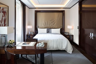 There are 200 rooms and 34 suites ranging from Superior Rooms (30-40 sqm) to the spectacular 380-sqm Peninsula Suite. Each room is decorated in hues of grey and cream and features high ceilings, handcrafted furnishings, luxurious marble bathrooms, and cutting edge technology. Five of the suites have private roof terraces. Interconnecting rooms are available.