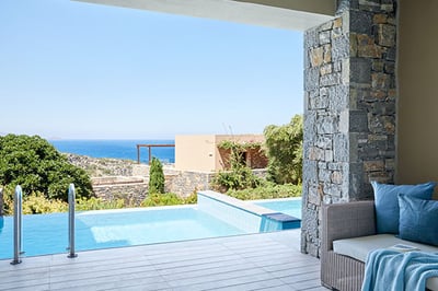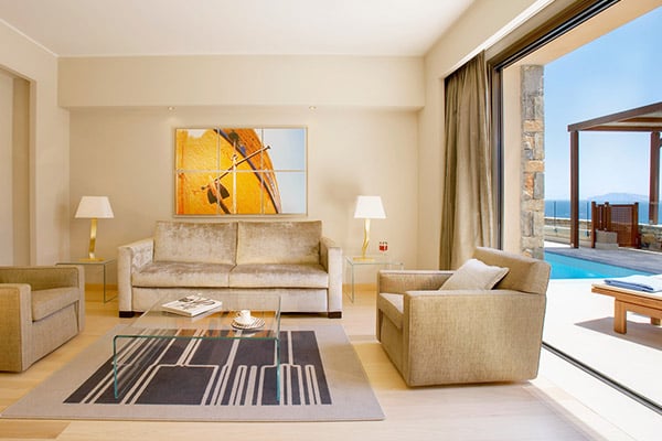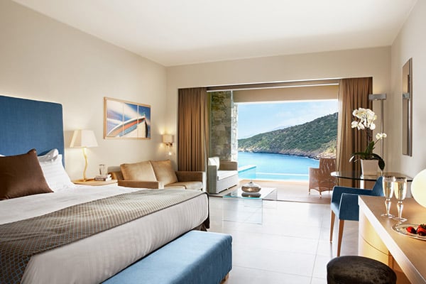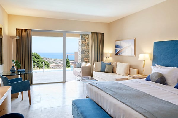 Daios Cove Resort resembles a natural amphitheater that descends to a private sandy beach offering sublime views, a wealth of dining options, and a spa. Highlights including Agios Nikolaos and Knossos Minoan ruin are just a ten-minute drive away.
