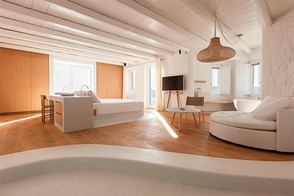 Santa Marina is primed for exploring the island’s popular beaches while the area surrounding Ornos Bay is brimming with restaurants, cafés, and shops. Guests will enjoy Santa Marina’s ethereal Ginkgo Spa with zen-like water features underfoot and ESPA therapies.