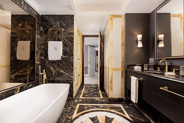 Westin Palace comprises 467 rooms including 24 suites ranging from 29-sqm Deluxe Rooms to the 160-sqm Royal Suite. Rooms are decorated in a Belle Epoque style with soft muted tones with colorful accents, antique furnishings, mahogany wood, original plaster detailing, and luxurious fabrics. Each room features a custom-made bed with crisp linens, a spacious marble bathroom, and all modern amenities. Some come with stunning views.