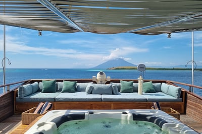 Travelling on Kudanil Explorer is an ideal way to discover the lesser-known parts of Indonesia in total luxury. We really like the feel of her ample lounge deck which is a glamorous place to sip a cocktail and watch the world go by - be it on a surf, cruise or dive trip. Unrivalled safety, space and cosiness. This is a yacht built for exploration, designed for comfort.