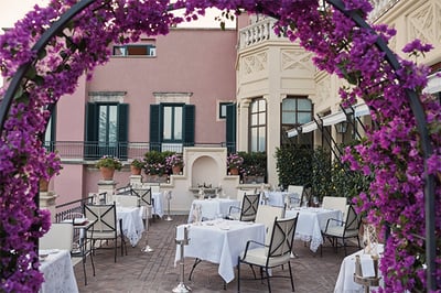 Perched on a rocky outcrop in front of the historic Greek Theatre in the center of Taormina, this luxury hotel is renowned as being one of Italy’s most glamorous retreats. Overlooking the sparkling Mediterranean Sea and the majestic Mount Etna, it's a firm favorite with the international jet set.