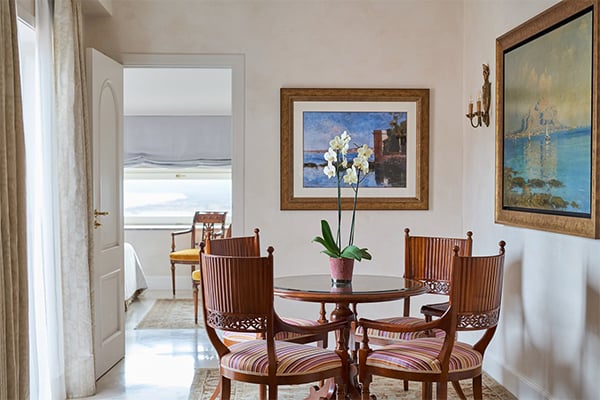 The hotel offers 70 spacious rooms and suites, most with balconies or terraces with stunning views. Lavishly decorated in opulent Italian baroque style, each room features plush furnishings, fine linens, and all modern amenities. For those seeking maximum privacy, Villa Flora is charming. This country house is situated 50 meters from the main building.
