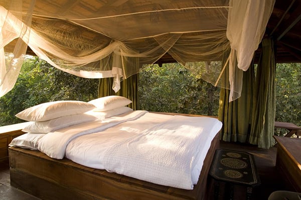 This 12-cottage safari lodge is home to naturalists trained by Conservation Corporation Africa (CC Africa) to ensure that you get the best wilderness experience when you enter the park. However, what made a difference for me was the opportunity to do bird watching while relaxing from my own private machan. If you want to truly immerse yourself in the sights and sounds of the jungle at night, opt to sleep out in comfort beneath the stars.