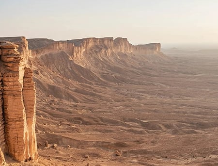 Afternoon excursion to the Edge of the World one of the most famous attractions in Saudi Arabia -  a stunning geological formation characterized by towering cliffs that extend for miles, offering breathtaking panoramic views of the surrounding desert landscape.
