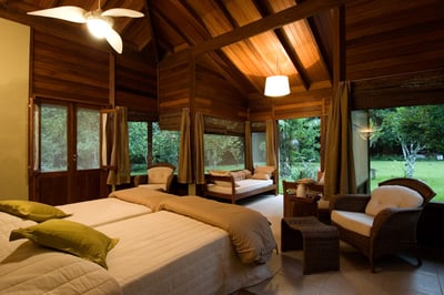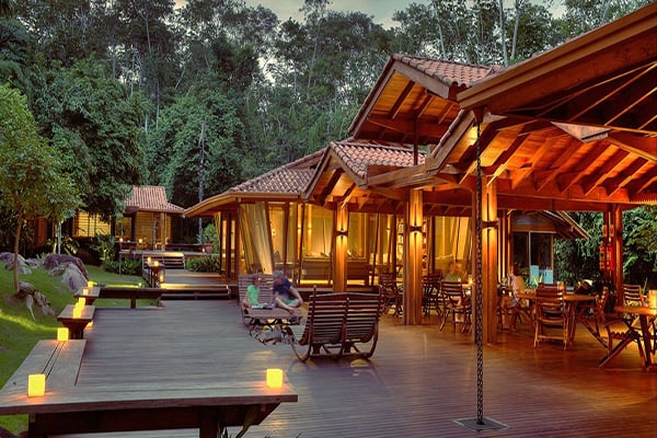 In between activities, breakfast, lunch and dinner are served in the Lodge’s restaurant. The chef prepares Brazilian food using produce grown at the lodge. After dinner, guests can relax by the open fire and talk over the adventures they’ll be having on the next day.
