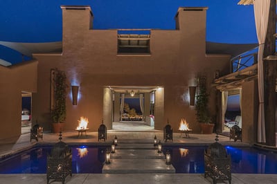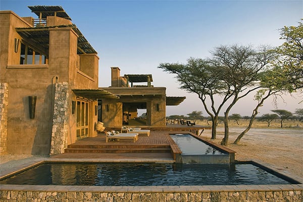 Part of the Onguma Reserve in the eastern borders of Etosha, Onguma The Fort is a luxury lodge with sunset views over the Etosha Pans. In contrast to most safari lodges, this unique, Kasbah-style lodge has massive walls, a central tower and a distinctly Moroccan-Indian aesthetic.