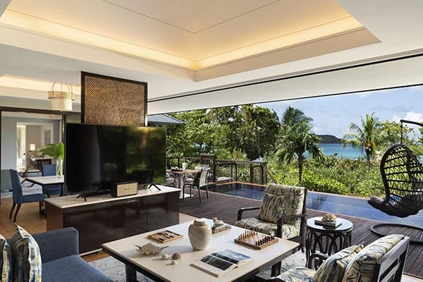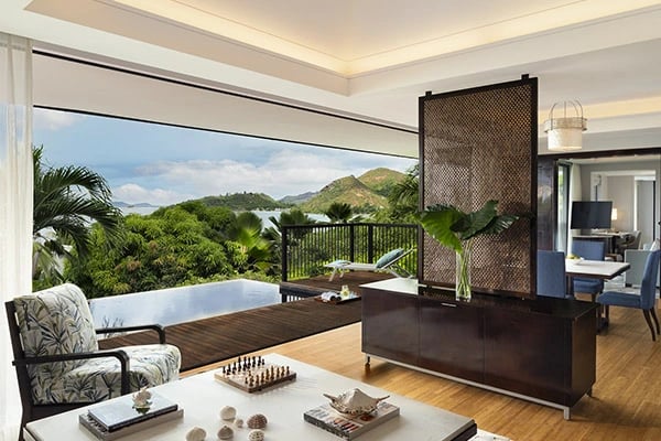 Situated on the second largest island in Seychelles, Raffles Praslin comprises 86 contemporary villas. Each of the villas has its own private terrace, pool, and balcony and has excellent views of the ocean. This is a superb location for people who want to really get away from it all and experience total relaxation. There is a good selection of bars and restaurants, including poolside dining and the chic Curieuse and Losean Restaurants. Arrive by private boat, plane, or helicopter and prepare to completely unwind...