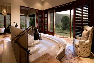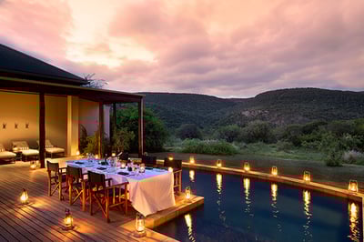 Melton Manor is a luxurious four-bedroom safari villa located in the Kwandwe Private Game Reserve, a Malaria-free area in South Africa’s Eastern Cape, close to the Garden Route. This elegant frontier farmhouse combines distinctive South African style with contemporary comforts and offers spectacular views of the Fish River and Afromontane forests.