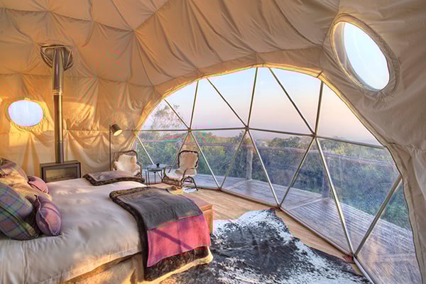 King-size beds and floor-to-canvas-ceiling bay windows create a grand sense of space. Ensuite bathrooms with spacious twin showers, offer a relaxing place to start and end each day. And in-room wood-burning stoves are perfect for cooler evenings, with a glass of wine in hand. Choose from a double tent, family tent, or honeymoon tent setup, each with thoughtful additions and enough privacy and space to make you feel like you’re the only visitors for miles around.