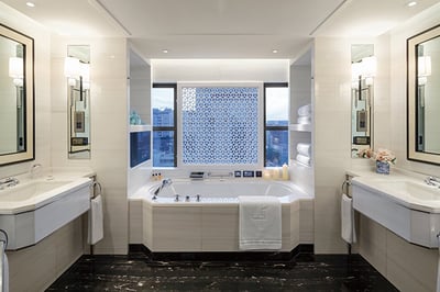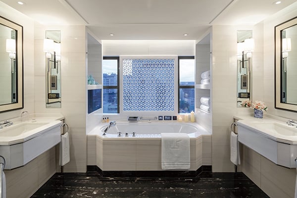 The hotel is elegantly refurbished rooms are decorated in smart and soothing pearl white and greys, subtle geometric prints, China-blue furnishings, and calligraphic art oversized living areas and bedrooms. Add big white marble bathrooms and you have the unmistakable Peninsula experience.