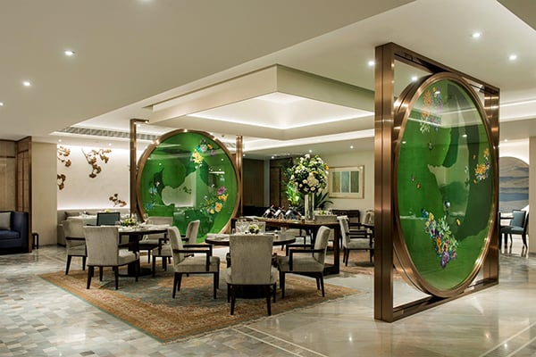 Huang Ting Chinese restaurant, with its zingy fresh Cantonese cuisine and charming interiors, retains its authentic carved wood walls, red lanterns, and painted birdcages. International restaurant Jing serves farm-to-table favorites.
