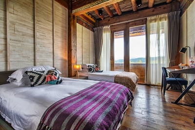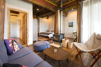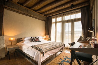 There are five tented villas, featuring king-size beds with heated mattresses, heated en-suite, large bathtubs, and wood-burning stoves. There are a further ten rooms in the 150-year-old Tibetan residence, ranging from standard rooms with shared bathrooms to the Tibetan suite with en suite, private living space, and balcony.