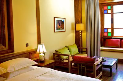 Songtsam Shangri-La is the flagship lodge and located in the heart of the Yunnan region just a short walk to the entrance of the centuries-old Songzanlin Monastery. The rooms are modest in size but very cozy, decorated in Tibetan style balanced with modern comforts. Facilities include a library, open rooftop, Tibetan restaurant, and outdoor seating area. Activities around Shangri-La include guided tours to the monastery, village walks and Tibetan family visits, guided hikes, bicycle rides to Napahai Lake, and horse trekking.