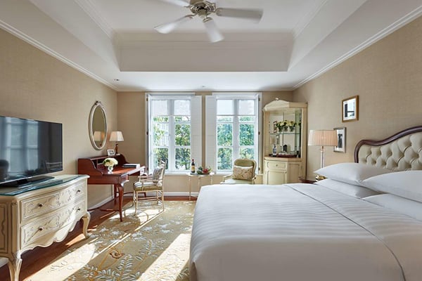 The 244 rooms, divided between Standard and Deluxe Rooms and the larger Suites all embody the graceful French colonial style of the hotel with wooden floors, paddle ceiling fans and some wonderfully unique touches. The Suites feature French wooden shutters, a separate living room area, spacious bedroom, and a large marble bathroom with a walk-in rain shower.
