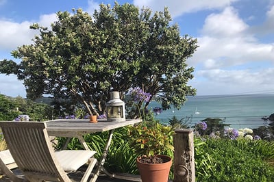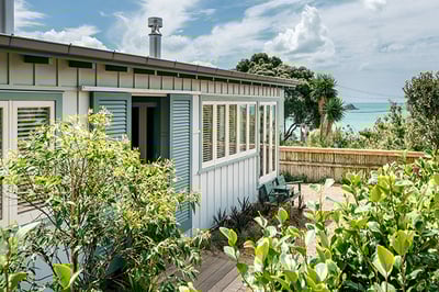 The Boatshed is perched above a dazzling bay and the white sandy beaches of Oneroa on Waiheke Island, a 35-minute ferry ride or ten minutes by helicopter from Auckland, on New Zealand’s North Island.