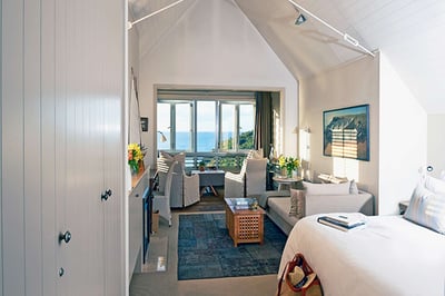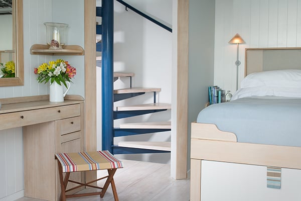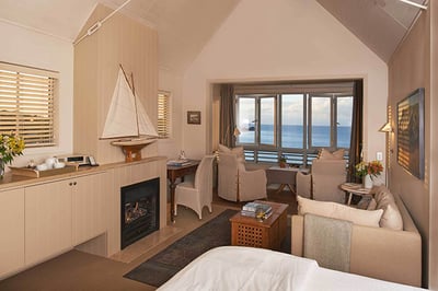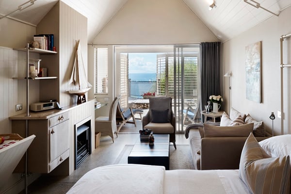 The Boatshed provides 7 lavish Beachfront Suites including two bungalows, all offering the utmost privacy. The 3 Boatsheds are cozy living spaces with an open plan bedroom and sitting area, along with a fireplace and sun loungers on the private deck. The Lighthouse Suite is a three-storey tower featuring a day room, private terrace and views of the boats on the bay. The Bridge Room features private stairs and entrance, internal porch, and alcoholic mini-bar. Bungalows boast a private porch with garden views, large sitting areas, and a freestanding bath for two.