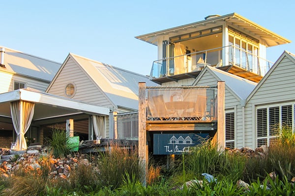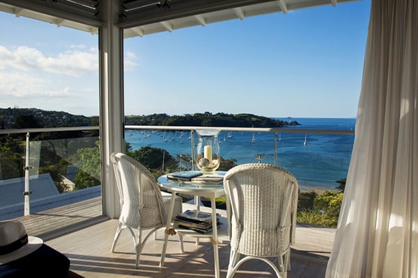 This luxury boutique hotel is perched above a dazzling bay and the white sandy beaches of Oneroa on Waiheke Island, a 20-minute drive from Auckland Airport followed by a 35-minute ferry ride.