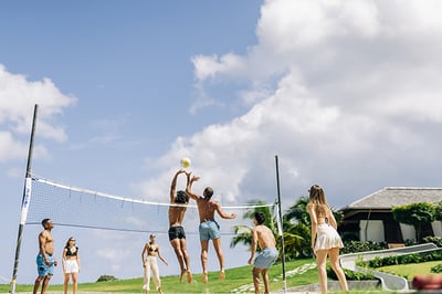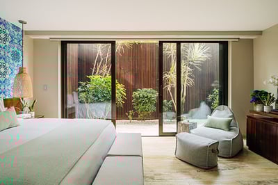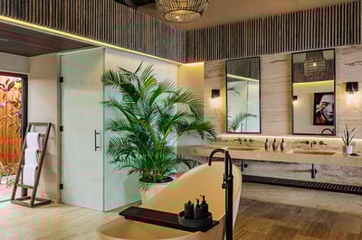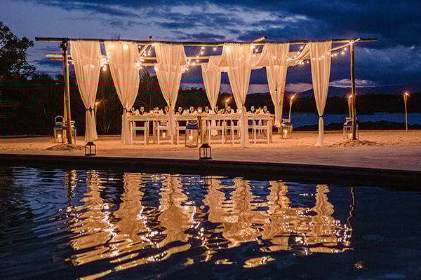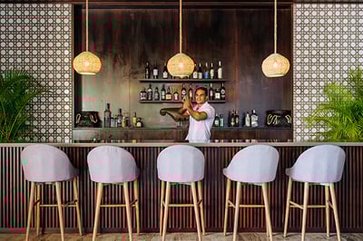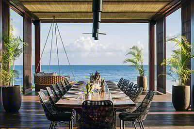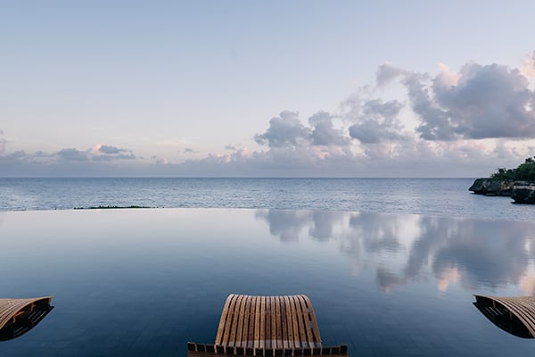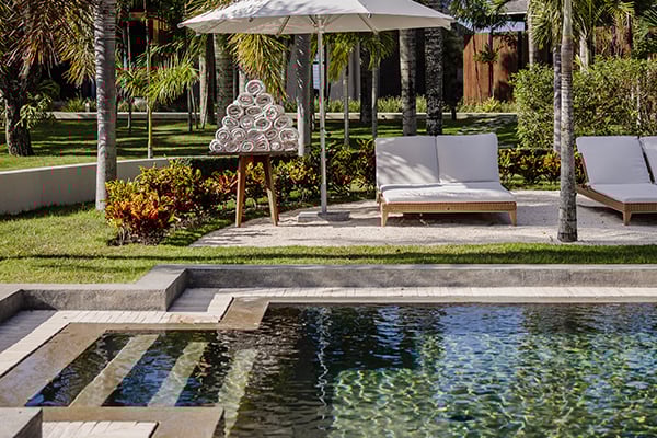 - Two infinity-edge freshwater swimming pools with shallow sections for in-water lounging and dining