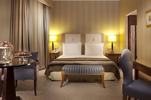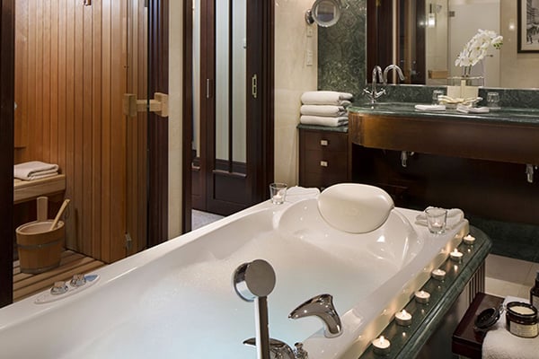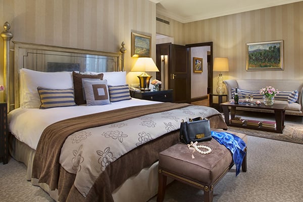 This is a charming hotel with a distinctly old-world feel. The guestrooms and suites ooze glamour with dark wooden furniture, rich fabrics, and marble en suites with walk-in showers and bathtubs. To indulge, we recommend booking the Esplanade Suite with its huge living-dining area, kitchen, Jacuzzi, and sauna.