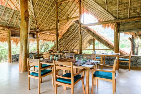 The lodge prides itself on offering fresh, locally sourced meals that celebrate Sri Lankan flavours. The open-air restaurant serves a rotating menu based on seasonal ingredients, much of which are sourced from the on-site organic garden. Signature dishes include aromatic curries and freshly baked bread. The bar, with its jungle backdrop, is the perfect spot for a sundowner, offering a small but well-curated selection of wines, beers, and cocktails.