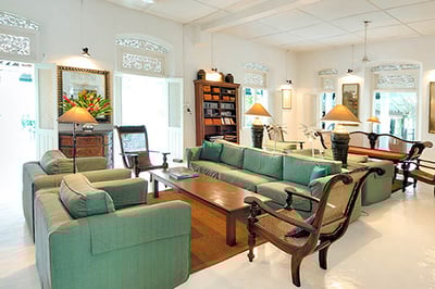 Once the home of a Scottish spice merchant, this original house was built in the 1860s and has been converted into a small hotel with 8 bedrooms. The building has been fully renovated and retains all of its original charm, with a large central living area at the heart of the house. Rooms are tastefully furnished with tiled flooring, a clothes rack, mosquito net, and a seating area.