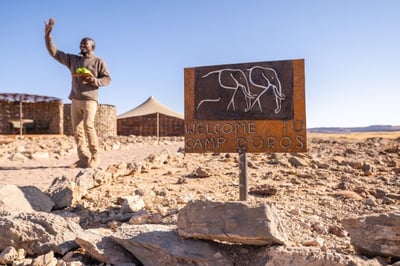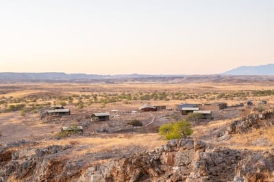 Nestled in the rugged wilderness in the heart of Namibia's Damaraland, Camp Doros is an intimate, eco-friendly camp hidden among Mopane trees and perched on a high bank overlooking a dry riverbed. This luxurious camp offers a fully immersive exploration of Namibia’s breathtaking landscapes, where guests can experience the region’s incredible wildlife and rich culture, under the expert care of an experienced guide.