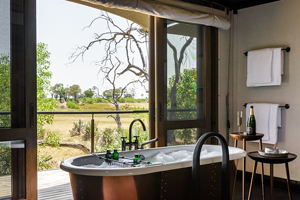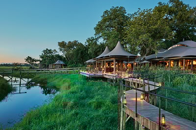 Situated on one of the Okavango’s key waterways, Xigera Safari Lodge is surrounded by picturesque papyrus swamps and wooded islands and is renowned for its very high density of sitatunga antelope. The area is known for remarkable mammal sightings including red lechwe, spotted-necked otter, elephant, buffalo, reedbuck and tsessebe Predators include lion, spotted hyena and leopard.