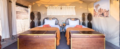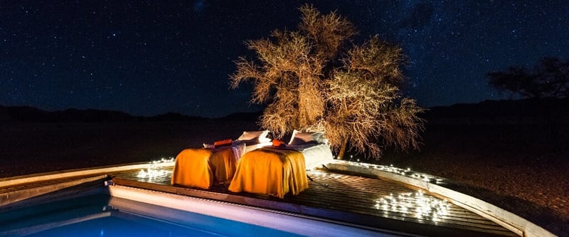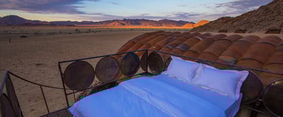 Offering convenient access to the Sossusvlei dunes, Camp Sossus in Namibia is an exciting, semi-permanent tented camp offering an exotic desert retreat for avid campers. Welcome surprises will include mountain biking trails arriving at refreshing hidden desert pools, picnics on the plateau overlooking the endless vistas, and falling asleep on your star bed under the Milky Way. As Camp Sossus is sold on private basis per guest - be it honeymooners or a group of friends or family - every experience is perfectly tailored to your needs.