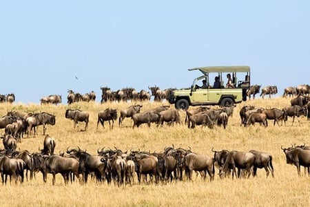 Continue to enjoy two game drives a day, following the wildebeest migration on the game-filled plains.