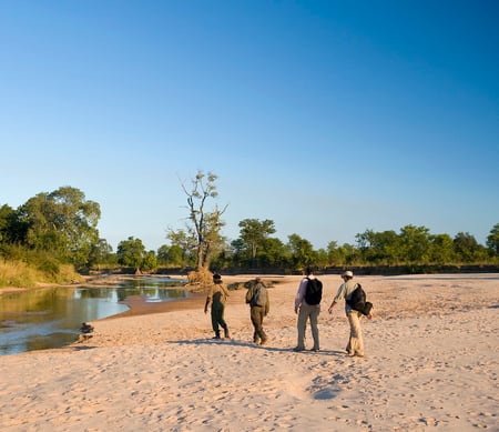 Today you’ll leave the camp early and walk downstream to Nsolo Bush Camp. The river widens in this section and the Luwi’s white sands carve a dynamic route through open grazing lawns and game rich areas.
