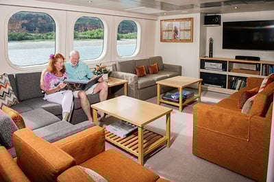 Top-notch facilities, superb service, and modern comforts make True North a luxurious vessel in which to explore the wilderness. The highlight for all adventurers will be the onboard helicopter offering the opportunity to venture deeper into the landscape.