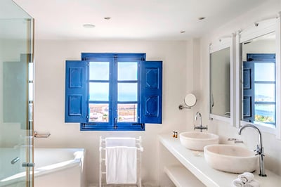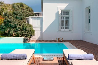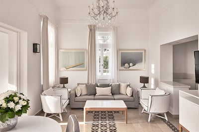 Built around 400-year old canava wine cellars, Vedema Resort offers a warm and welcoming stay - with its low stone walls, winding paths, and steps leading from the pool, there’s a bit of a village feel about it. All of the rooms are spacious and cozy, but our picks would be the three-person Olympian villas that come with a small outdoor pool and whirlpool bath; and the Presidential Villa which also includes butler service.