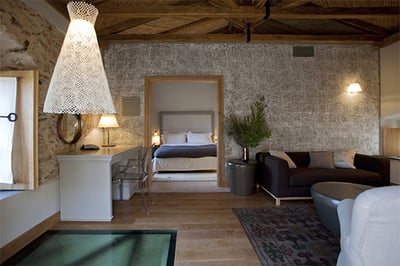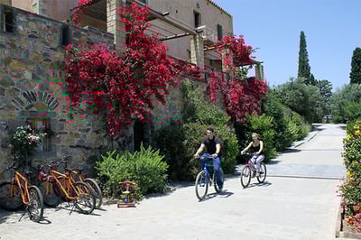 This is a small but perfectly formed escape surrounded by olive trees, lemon groves, and vineyards. Utterly charming, it has been respectfully renovated keeping the fireplaces, windows, and Byzantine arches intact. The rooms are a lovely mix of old and new with a slightly medieval ambiance, and we especially like the facilities that include swimming pools, Turkish Baths, and whirlpool tubs to keep both parents and children cool in the unforgiving Mediterranean heat.