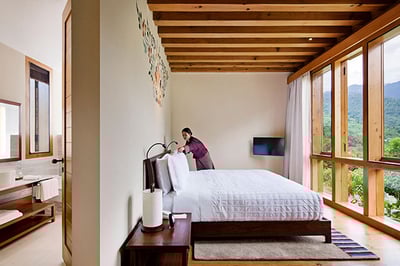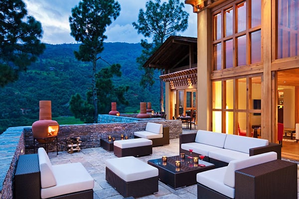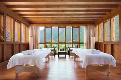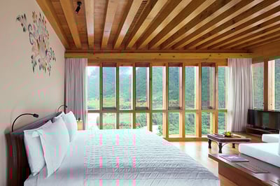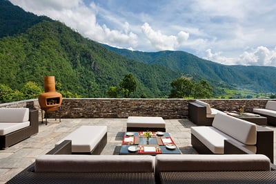 "COMO Uma Punakha is an intimate, luxury lodge located at the far western end of the lush Punakha Valley, and is ideally located for those who wish to explore Bhutan. The ultimate in tranquility, the property is nestled on a hillside which means that every room commands sweeping views of the valley and the Mo Chu. Local produce comes from local farmers, and the Ayurvedic therapies at the spa are out-of-this-world."