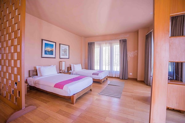 “The Resort at Raven’s Nest in Bhutan feels authentic and homely, and the attention to detail is impressive. Built from handcrafted stones and wood from the high Himalayas and local mud, there’s an earthy, rugged feel that’s complemented by curtains, furnishing, bed linens and rugs from India. For the best views, go for the Executive suite, The Perch, on the top floor of the main building which has 180-degree views.”