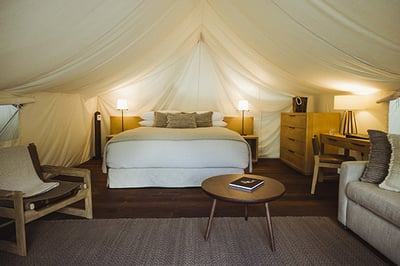 "Offering a tented safari in Canada - Clayoquot Wilderness Lodge makes you feel like you're in the absolute middle of nowhere when you're only 40 minutes by boat from Tofino. The losge is located in a biosphere reserve with sustainability at the heart of everything they do. Head out on a kayak or Zodiac to see the local black bear population, before returning to the property to enjoy an incredible home-cooked meal on the terrace of the Cook House."